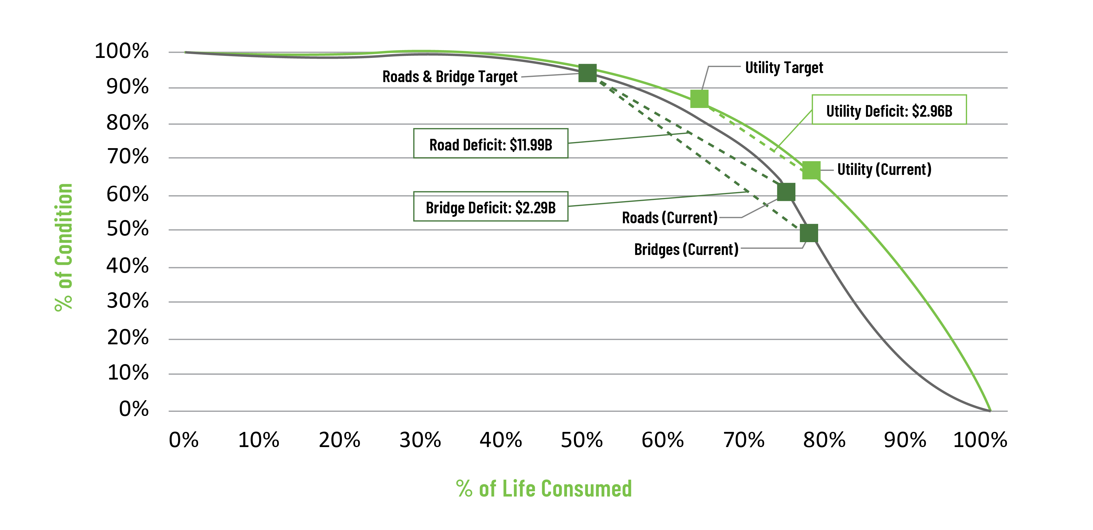 Infrastructure Deficit = Portfolio Target State Value ($) – Portfolio Observed Condition Value ($)